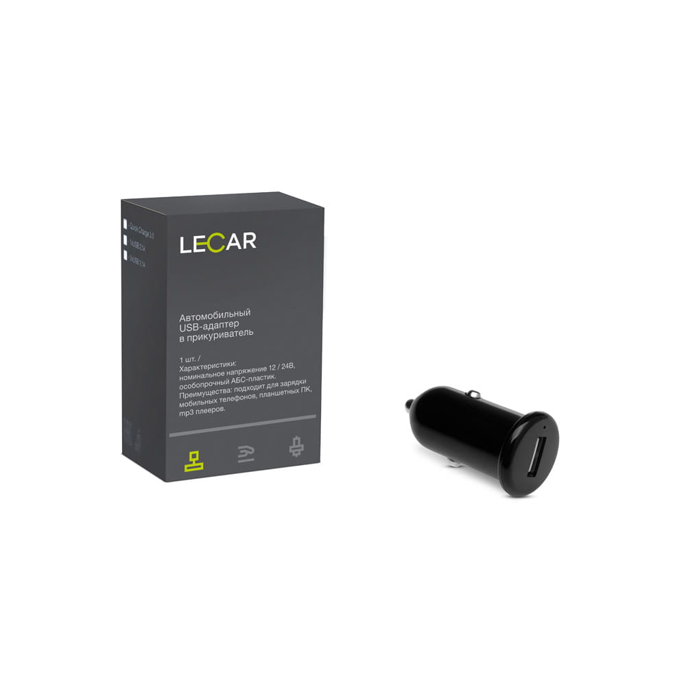 Адаптер автомобильный в прикуриватель (1 USB), 2.1А, 12/24В, LECAR000035209