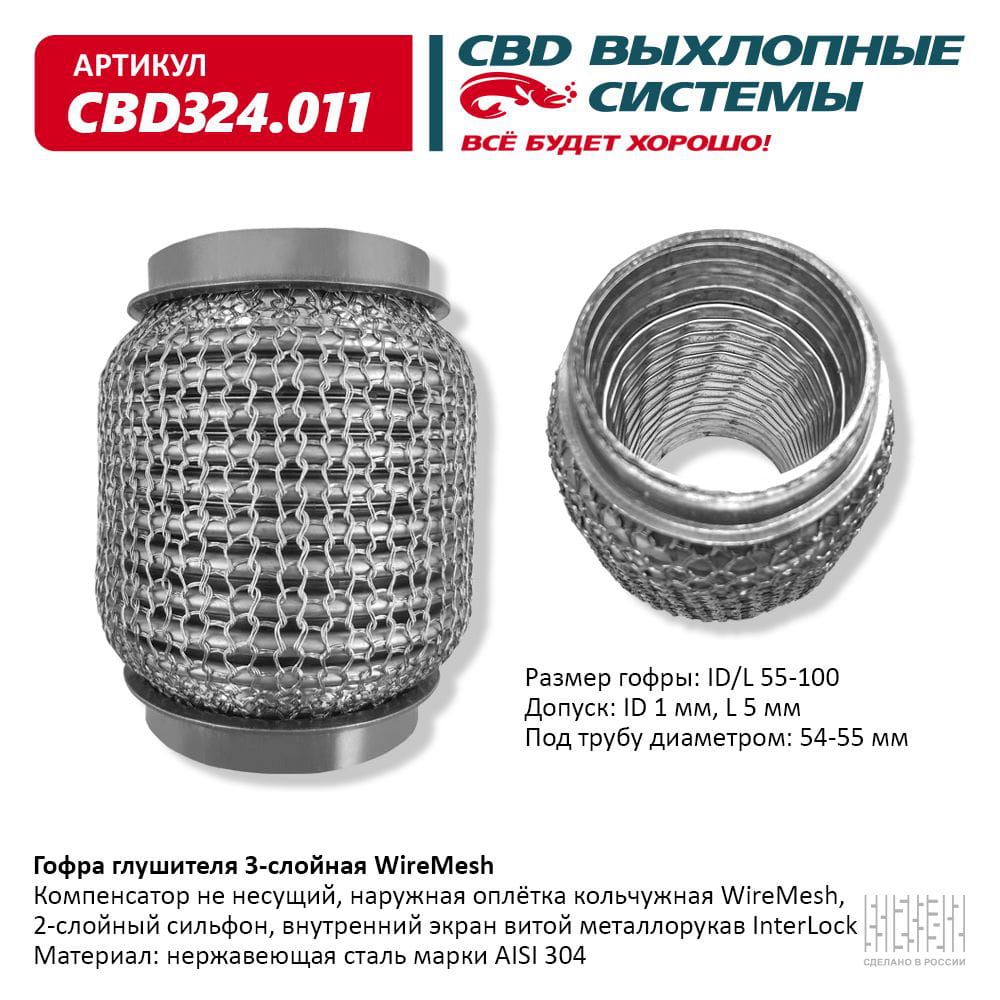 Гофра глушителя 3х-сл WIRE MESH 55-100. CBD324.011