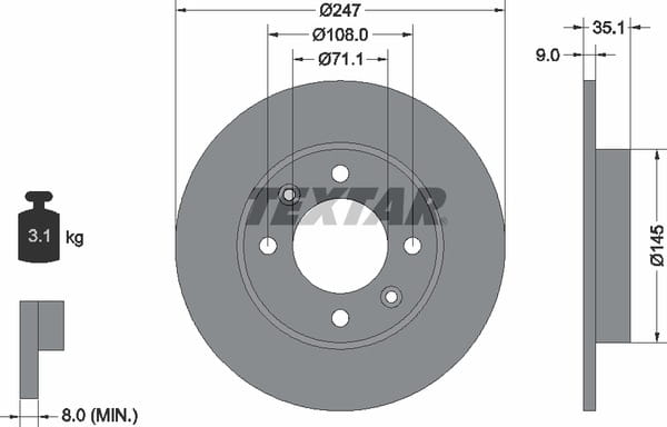 Диск тормозной задний с покрытием PRO CITROEN/CITROEN (DF-PSA)/NISSAN (DONGFENG)/PEUGEOT TEXTAR 92111703