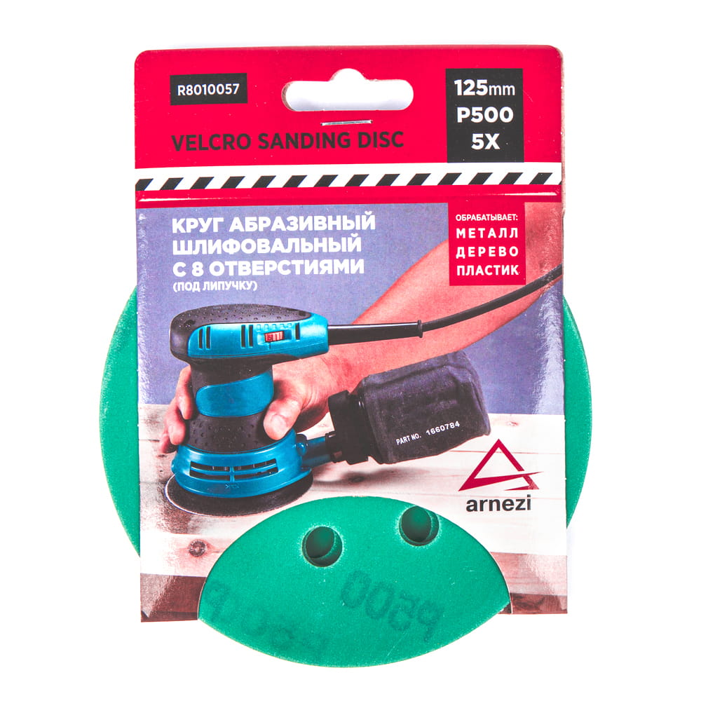 Круг абразивный (шлифовальный) d=125 мм P500 с 8 отверстиями под липучку (5шт) ARNEZI R8010057