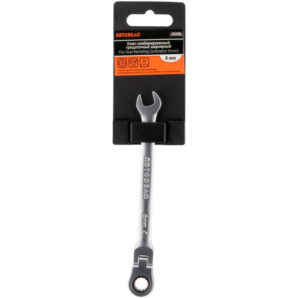 Ключ комбинированный, трещоточный, шарнирный, 8 x 8 мм АвтоDело 30208